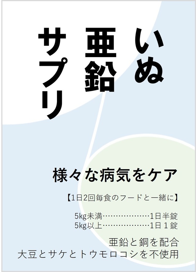犬/亜鉛/サプリ(30錠5㎏以下の子60日分、5㎏以上の子30日分)